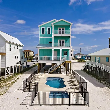 Located approximately a 10-minute drive from Gulf Shores Public Beach, the 10-bedroom Absolutely Beachy Gulf Shores villa boasts a swimming pool with a spa bath and a hot tub. Featuring sea views, this Gulf Shores holiday home invites guests to visit Souvenir City, located 2.5 miles away.